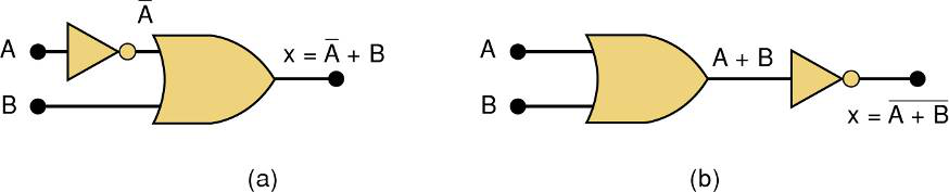 下面这张图说明了或非门的符号是如何演变而来的