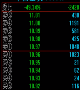 2.当委比值为负值时,表示卖方比买方强